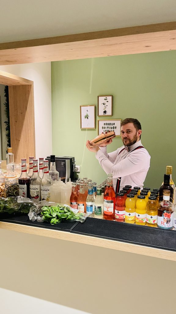 L’expérience à MAISON LASSAGNE se conclue avec un atelier de mixologie animé par un barman pour s’initier à l’art du cocktail.